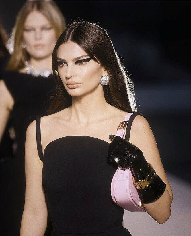 Яркий пример - шоу Versace, которое прошло в Лос-Анджелесе всего пару дней назад. Пэт МакГрат решила сделать главным элементом бьюти-образов моделей стрелки - широкие, длинные, покрытые мелким глиттером. И пускай последний удалось разглядеть лишь на видео в запрещенной сети легендарной визажистки (на фото с подиума стрелки выглядели просто черными), образы получились очень эффектными. Чуть более минималистичные за счет меньшей толщины стрелки предпочли визажисты Valentino и Balenciaga. У первых к длинной тонкой стрелке добавился еще яркий черный контур на нижней линии роста ресниц, а у последних - стрелки вытянулись практически прямой линией до висков.