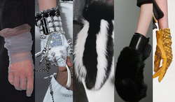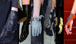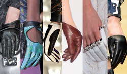Объемные перчатки, напоминающие деталь рабочей униформы, со сборками на запястье - также являются тенденцией сезона. Обратите внимание на вечерние модели из прозрачных материалов, а также повседневные - из замши и кожи.