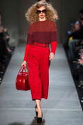 Кожа продолжает царствовать в качестве основного материала для одежды осенне-зимнего сезона, впрочем, как и шерсть. Интересные образы можно увидеть с брюками из бархата, а также из тканей с ворсом различной длины.