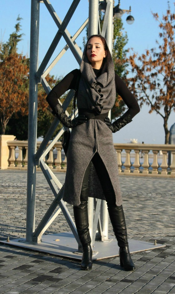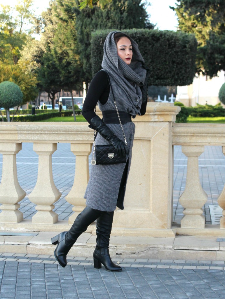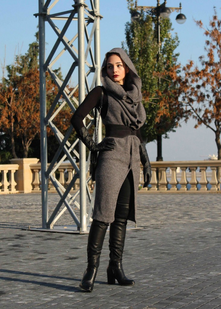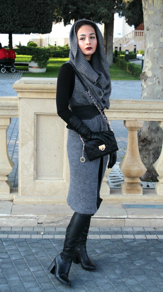 Сегодня я использовала сразу несколько своих верных бойцов в одном образе. Этот серый жакет-трансформер служит мне уже не первый год, и я ни на что его не променяю! Он безумно теплый - настолько, что способен заменить пальто! Он меняет форму, длину и представляет собой настоящий полигон для экспериментов. Как видите, сегодня я в образе слегка неадекватной джедайки. Сумочку я выгуливала в первый раз, она у меня куколка и вмещает все, что нужно юному воину вроде меня - телефон, деньги и помаду (меч я ношу за спиной). Сапоги эти крайне удобные за счет устойчивого каблука и за счет него же они не создают очевидной аллюзии на фильм "Красотка", чего я обычно опасаюсь, выбирая ботфорты. Вообще, с этой капризной моделью сапог так легко ошибиться - приходится вечно балансировать на тонкой грани между Д'Артаньяном и девушкой легкого поведения.