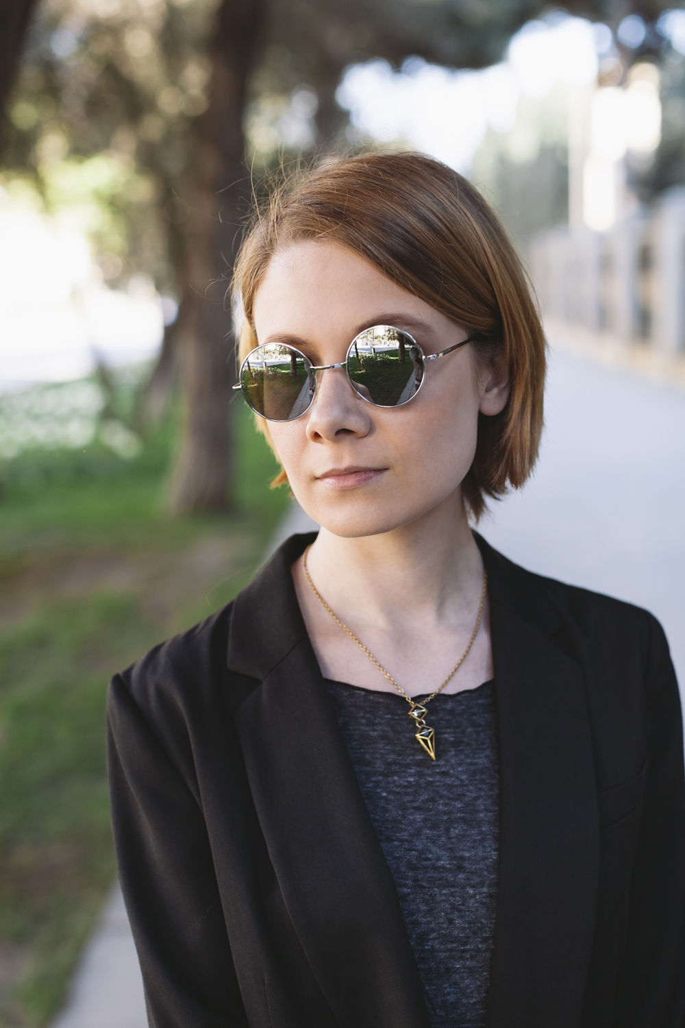 У меня на первом месте стоят солнцезащитные очки. Причем с недавних пор самой любимой моделью стали тишейды. Они же - "бабушкины очки", велосипеды или очки кота Базилио. Все верно, я говорю об очках круглой формы. Мои самые любимые - с зеркальными стеклами. Они невероятно удобные, стильные и подходят практически под любой мой наряд!