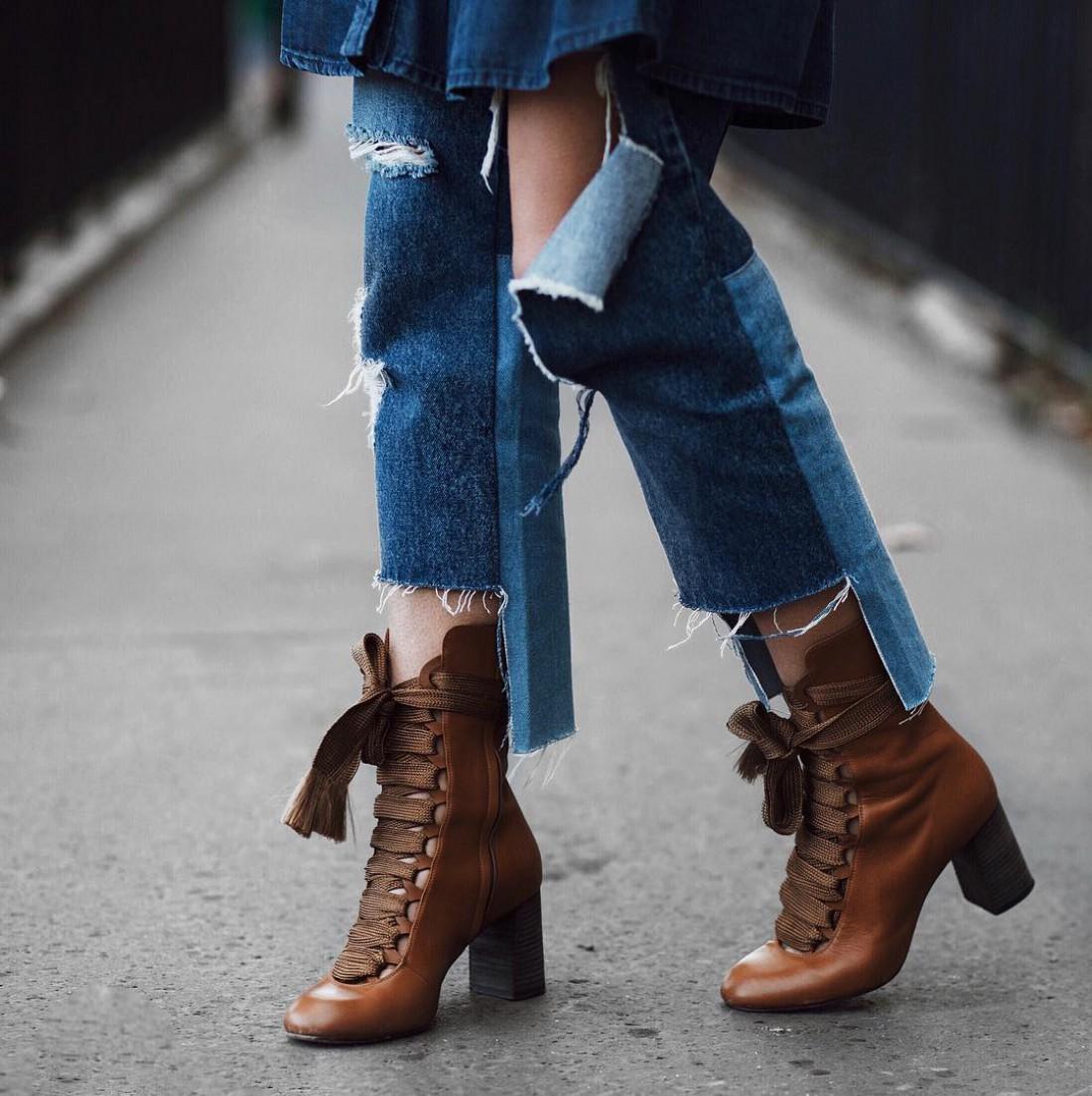 Стоило братьям Гвасалия "соорудить" пару джинсов из двух винтажных Levi`s, как модницы тут же взялись за ножницы и принялись осваивать дизайнерское мастерство, оставляя заднюю часть штанины длиннее передней. Что ж, мамы от остромодной тенденции в легком недоумении, да и мы, честно говоря, тоже.