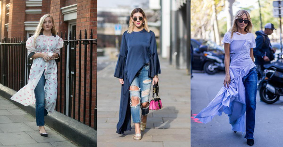 Платье в сочетании с джинсами, или строгими брюками, или какими-либо другими штанами - это тенденция, которая уходит и снова триумфально возвращается практически каждый год. Так, что назвать эту тенденцию новой нельзя!
