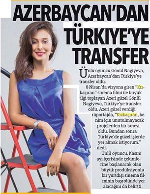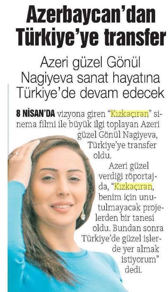 На днях в Турции состоялась премьера фильма "Kızkaçıran", в котором Кенуль Нагиева снялась в главной роли. Эта картина, как и предыдущая принесла ей небывалый успех. Многие СМИ Турции написали о ее переезде и новом фильме.