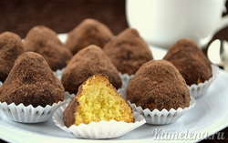 Печенья обваливаются в какао-порошке и напоминают по виду трюфели.