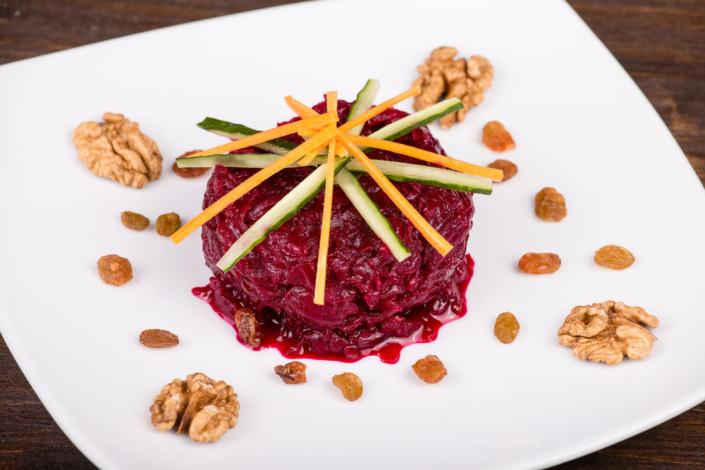 Известно, что свекла имеет массу полезных свойств и даже после варки, в отличии от других овощей, она их не теряет. Свекла может быть источником витамина С, меди и фосфора. Она имеет омолаживающие свойства благодаря наличию в ней фолиевой кислоты, которая способствует созданию новых клеток. И самое важное свойство, которое поможет пережить все застолья на Новый год 2016, заключается в том, что свекла помогает улучшить пищеварение.