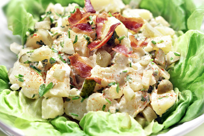 Салаты на Новый 2016 год - украинский картофельный салат с беконом и чесноком