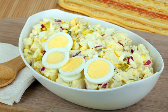 Салаты на Новый 2016 год - румынский картофельный салат с яйцами и сыром