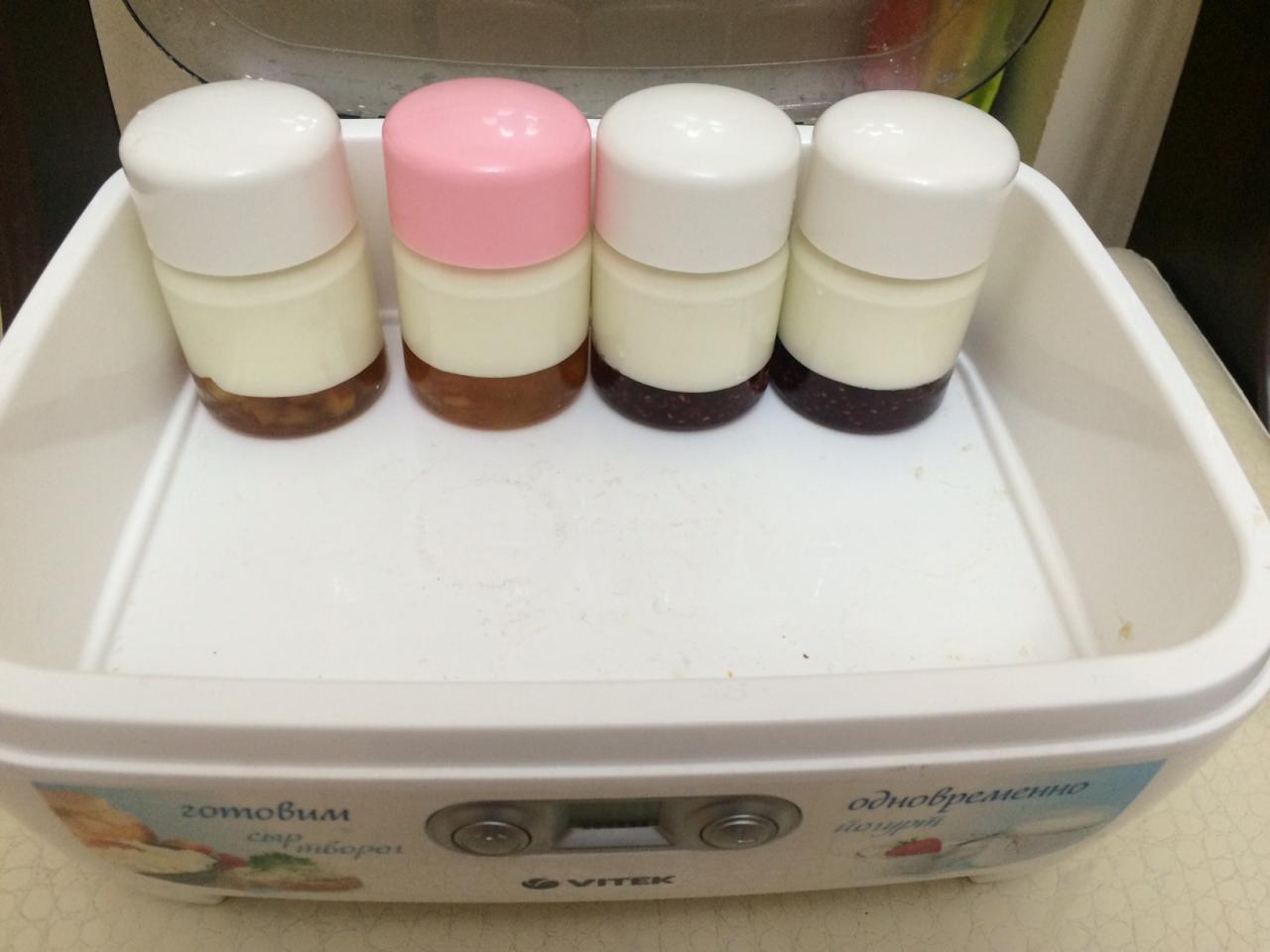 Ставим баночки в йогуртницу или мультиварку на 9 часов. Правда, пишут, что можно и меньше, но плотным йогурт получается именно через 9 часов.