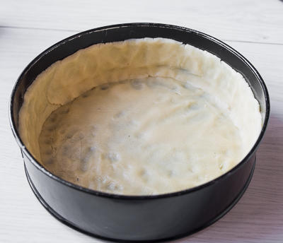Остывшее тесто вынимаем, раскатываем и укладываем в форму.