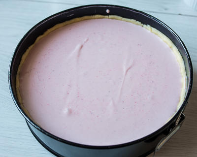 Добавляем в начинку и перемешиваем. Выливаем начинку в основу.