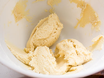 Добавляем желток, взбиваем до однородности. Добавляем муку и замешиваем тесто.
