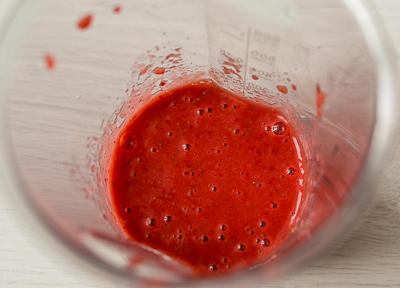 Клубнику перемалываем блендером в пюре.