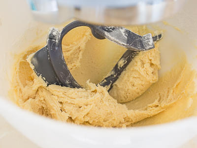 Добавляем белки и ванилин и еще раз взбиваем до однородного состояния. Постепенно добавляем просеянную с солью муку и замешиваем очень мягкое тесто - по консистенции оно должно быть чуть-чуть гуще заварного - т.е. таким, чтобы его можно было выдавить из кондитерского мешка.