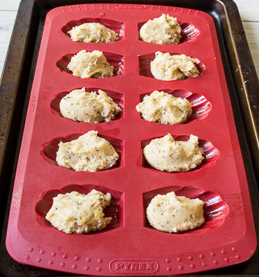 Кладем тесто в смазанные формочки.