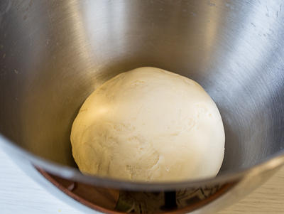 Муку просеиваем в большую миску, добавляем соль. Постепенно добавляем муку в молочную смесь. Замешиваем однородное, мягкое, гладкое тесто (при необходимости добавляем пару дополнительных ложек муки).