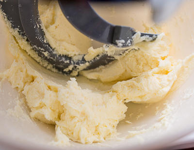 Сливочное масло взбиваем с обычным и ванильным сахаром до кремообразной консистенции.