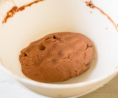 Добавляем яйцо и взбиваем еще раз. Добавляем просеянную с разрыхлителем, какао и солью муку и замешиваем тесто.