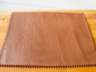Вынимаем тесто из холодильника, снимаем пленку и раскатываем в прямоугольный пласт толщиной 5-6 мм. Обрезаем края.