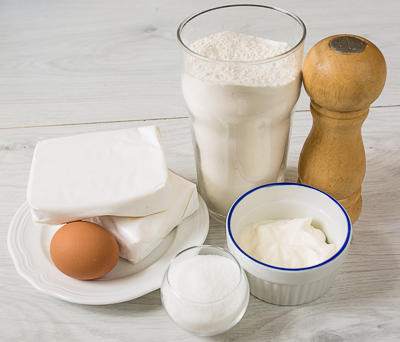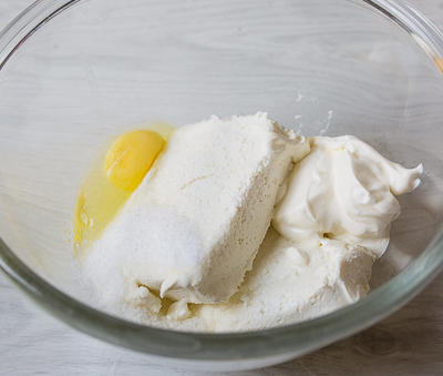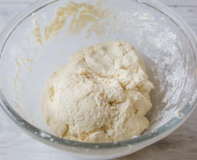 Добавляем просеянную с солью, содой и разрыхлителем муку и замешиваем тесто.
