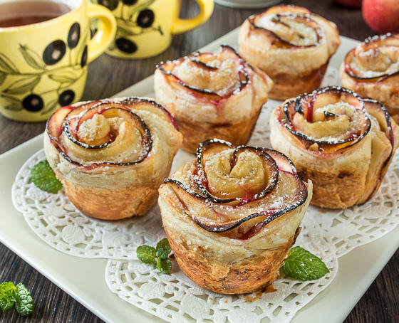 Ставим в формочку для маффинов. Повторяем с оставшимся тестом и яблоками.