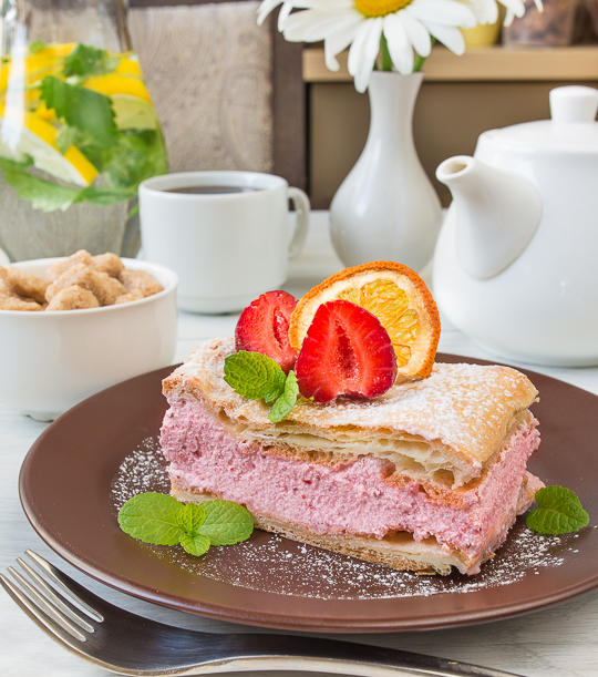 Разрезаем на части и подаем. Из указанных ингредиентов получается 8-10 порций пирога.