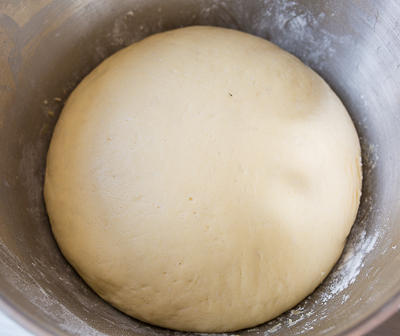 Накрываем пищевой пленкой и оставляем в теплом месте подходить. Это может занять от 40 минут до полутора часов. За это время тесто должно увеличиться в объеме вдвое.