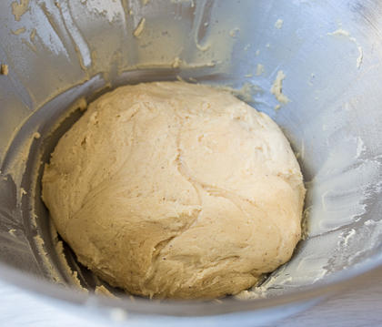 Добавляем просеянную с содой муку и замешиваем тесто. Чем дольше вы будете месить его - тем лучше. Я загружаю этим делом кухонную машину и оставляю минут на 15-20.
