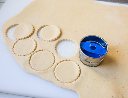 Раскатываем тесто в пласт толщиной 6-7 мм и вырезаем из него печенье.