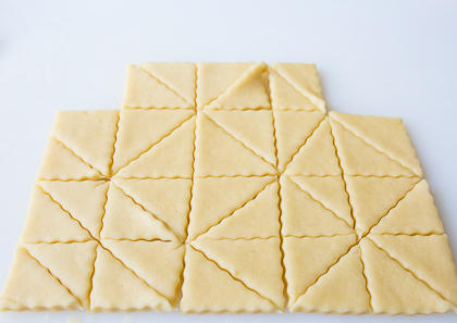 Вынимаем, раскатываем и нарезаем на треугольники произвольного размера.