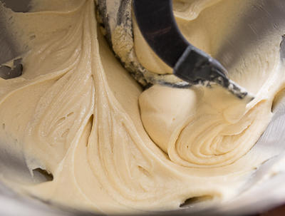 Сливочное масло взбиваем с сахаром до кремообразной консистенции.